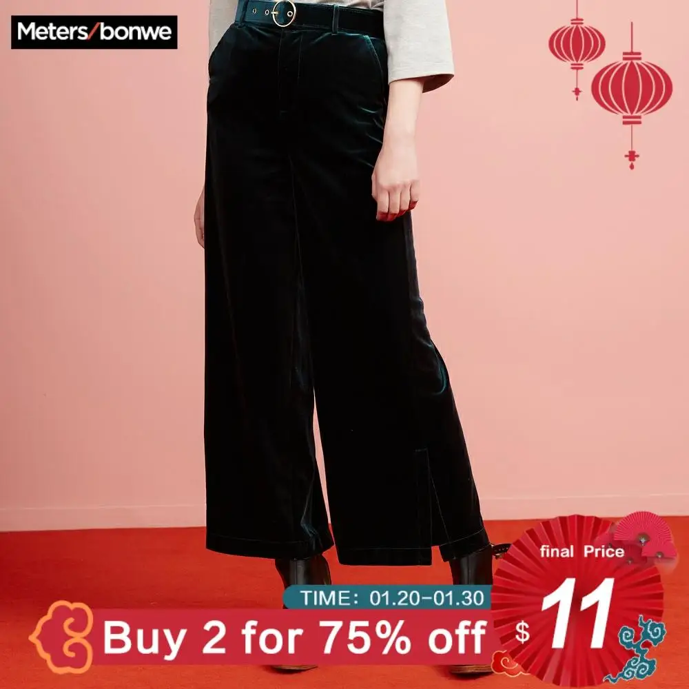 SALE Metersbonwe Wide Leg Velvet Pants For Women Winter Long Trousers Woman Loose Pants High Quality Off